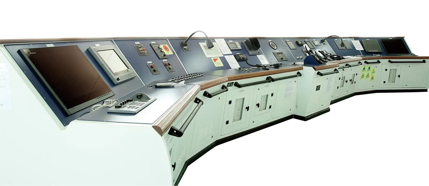 The centralized control console in the ship's cab is an integrated operating platform located in the cab, used to monitor and control critical systems of the ship. It includes multiple systems such as sound and light alarm, communication, emergency rescue, navigation, command and communication, and remote sensing telemetry, and integrates multiple functions such as steering, vehicle clock, host control, alarm indication, etc. Through display technology, touch interface, and physical control devices, the console integrates operational functions, making it convenient for crew members to operate and manage. The design goal is to improve work efficiency, simplify operations, reduce error risks, and enhance navigation safety, which is the core of ship operation management.